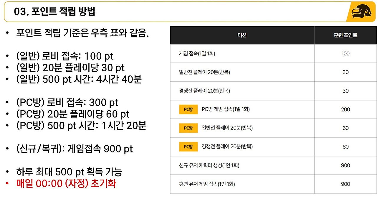 출석/인게임 플레이로 포인트를 적립하고, 포인트로 "사격 예측 교환권"을 교환해서