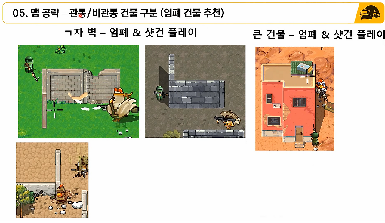 - 엄폐물 중에서는 ㄱ자 벽을 추천드립니다.